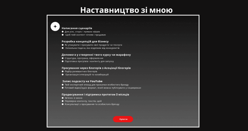 Клієнт Катерина запускає онлайн навчання по просування блогерів в Instagram. Потрібно створити продаючий лендінг до дати запуску. Підключити домен та можливість оплати.